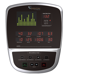 Генераторный велоэргометр вертикального типа для залов со средней и высокой проходимостью. Биомеханическая часть построена на основе бесконтактной энергонезависимой технологии нагружения Cambridge MotorWorks™, бесшумной трансмиссии QuietGlide™, многожильного поликлинового ремня и самых высококачественных подшипников - все это создает неповторимую плавность хода, в то же время обеспечивая самую высокую надежность. Многофункциональный тренировочный компьютер, состоящий из одного большого дисплея для вывода профиля тренировки и шести второстепенных дисплеев с остальными параметрами, максимально информативен и имеет простую понятную навигацию. В предустановленный пакет входят 12 тренировочных режимов - помимо классических и целевых, здесь есть программа снижения веса, 2 пульсозависимые программы и 3 Ватт-фиксированных режима.